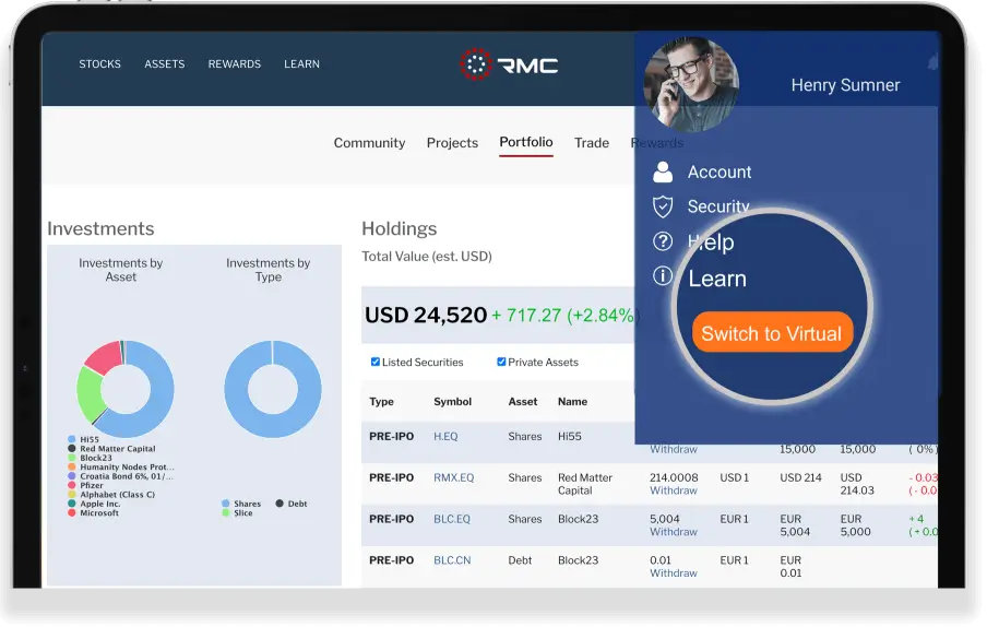 Red Matter connects Blockchain and DeFi to the real investment world via asset backed digital tokens, benefiting especially innovative start-ups in areas like clean tech and delivering more efficient financial services.